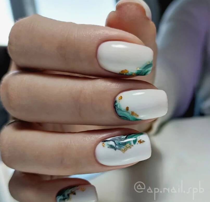 Например эффект мрамора и других красивых камней имитируют гель лаками с добавлением прожилок белым или чёрным цветом. Потому что так получаются более реалистичные текстуры. А также используют витражные гель лаки для глубины переходов. Лучше использовать контрастные цвета
