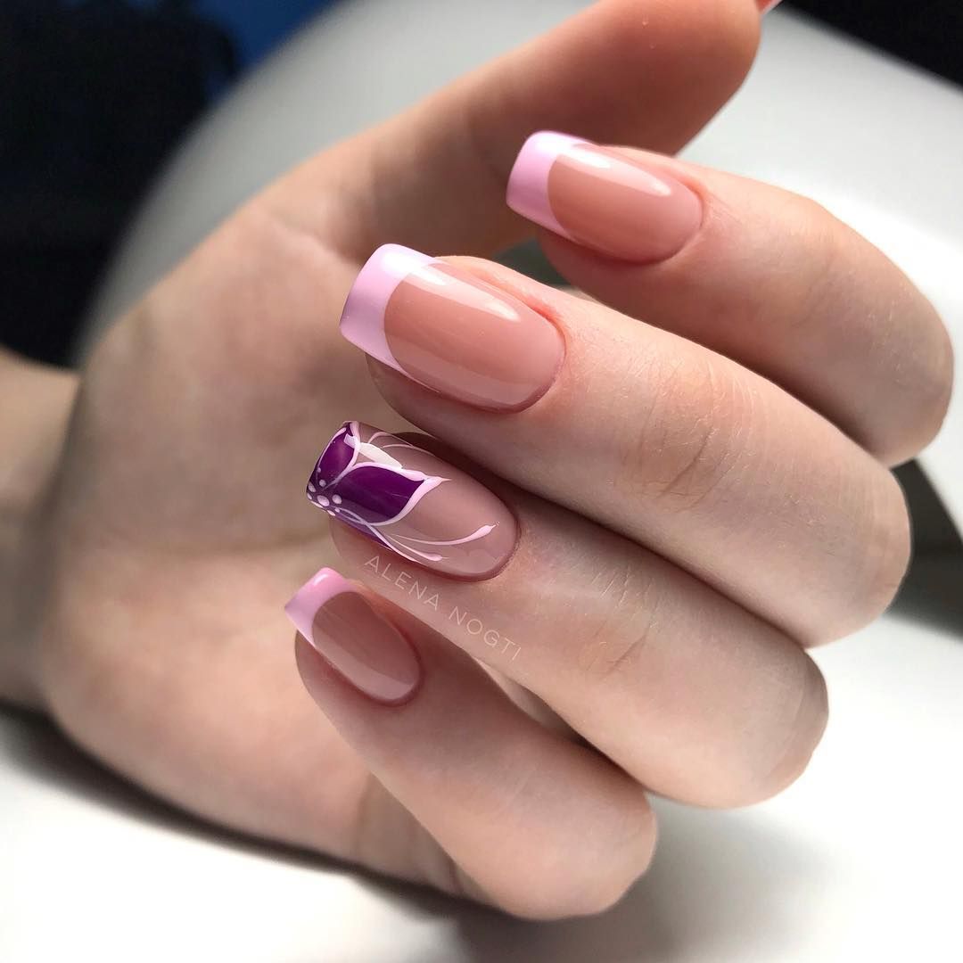 - для весеннего френча используют тематические рисунки, например, цветов, бутонов, веточек, листьев;