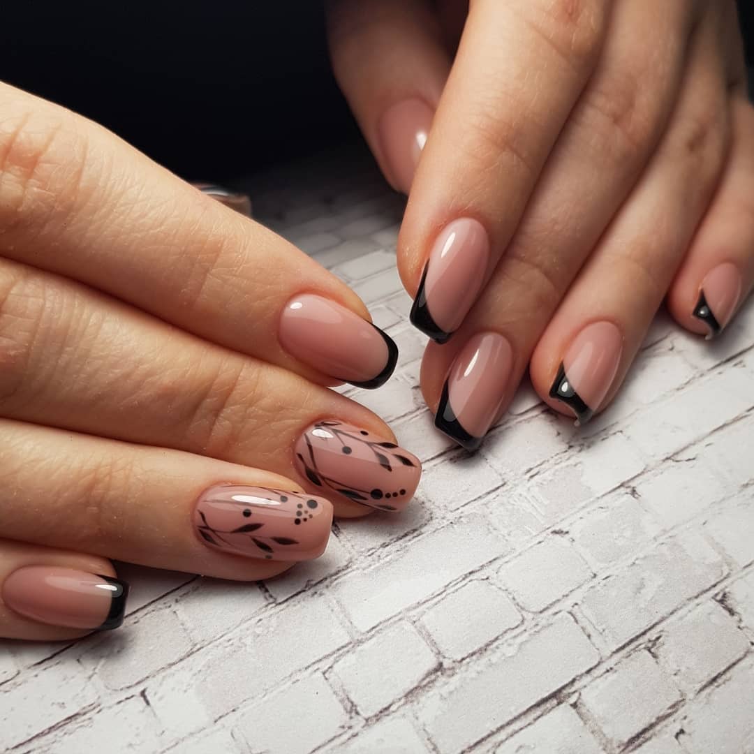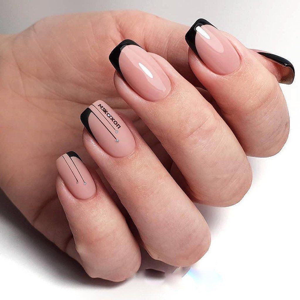 Переходим к антиподу предыдущей позиции – французскому маникюру с использованием черного цвета.
