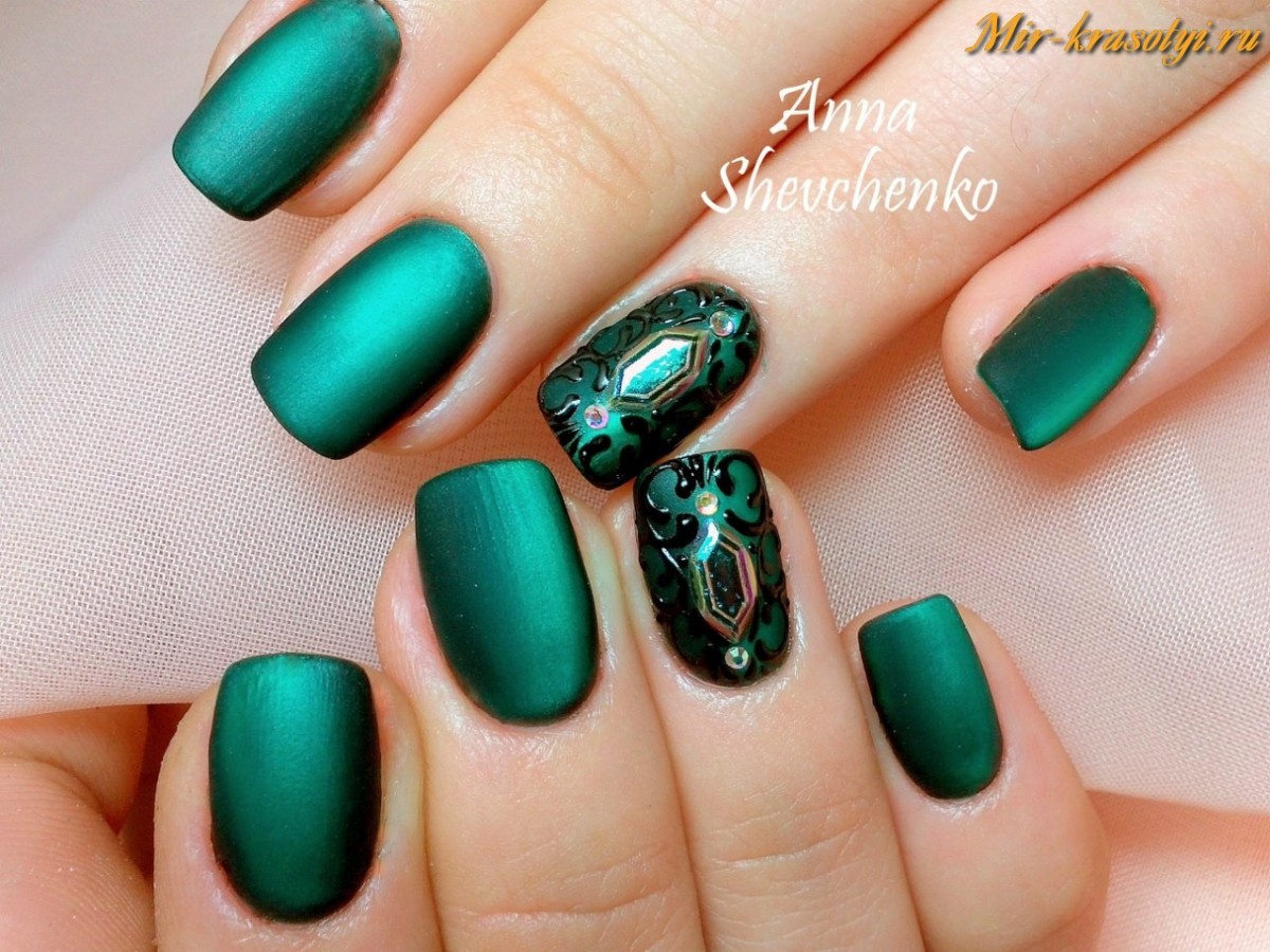 Тем, кому не хочется раскрашивать ногти в разные оттенки, можно просто выделить необходимые пальцы с помощью рисунков или характерных элементов. Например, на свадьбу невесты часто украшают безымянный палец на правой руке, чтобы всю жизнь провести в счастливом браке.