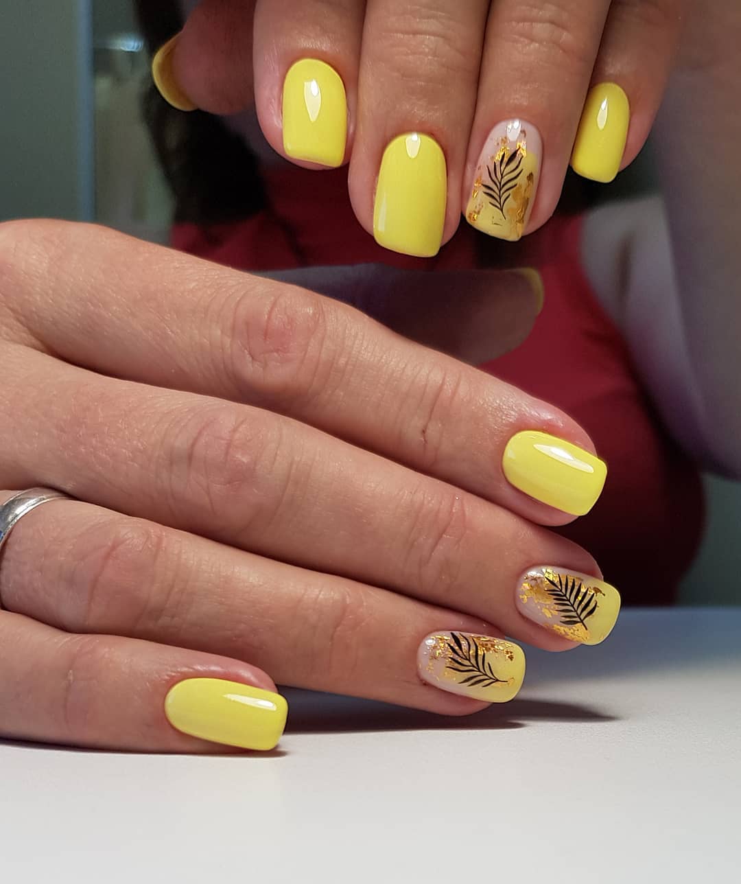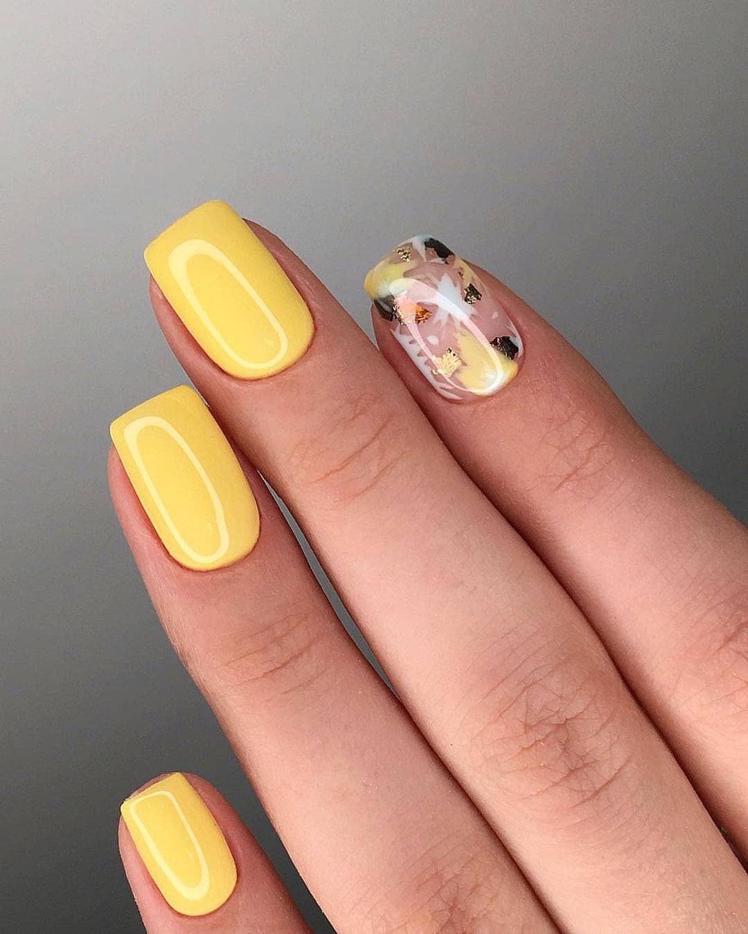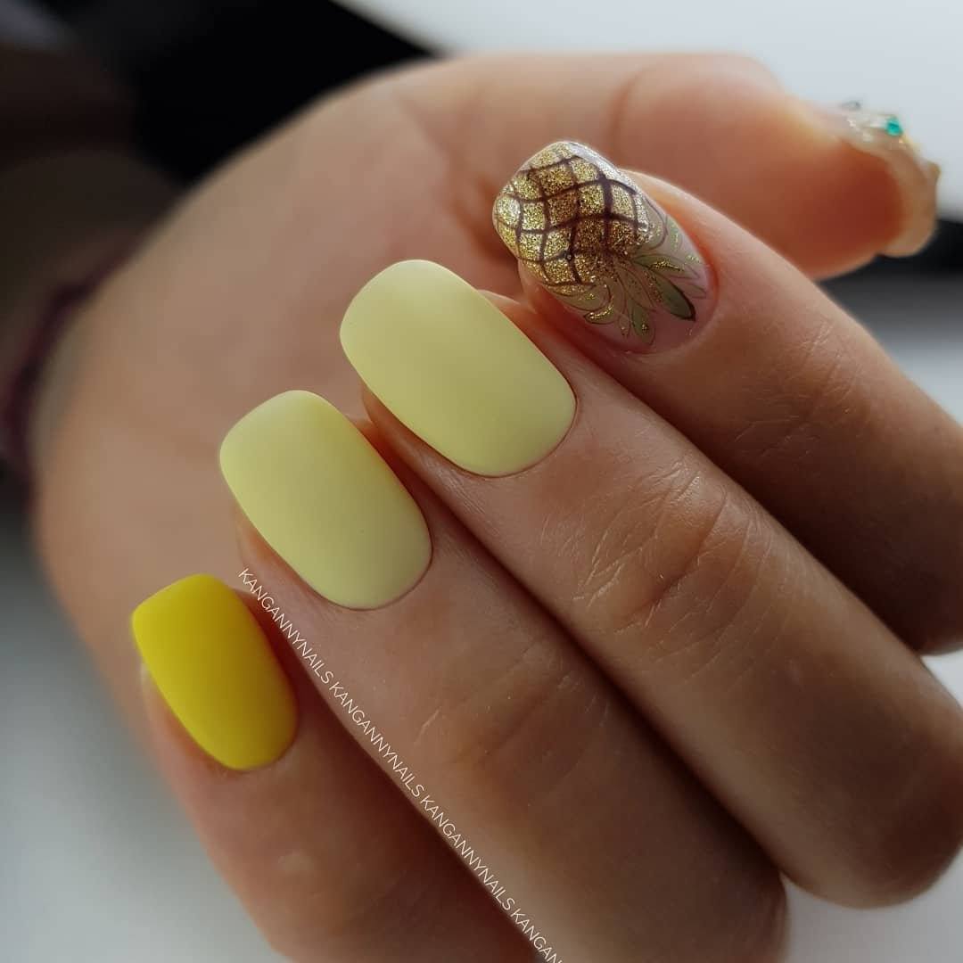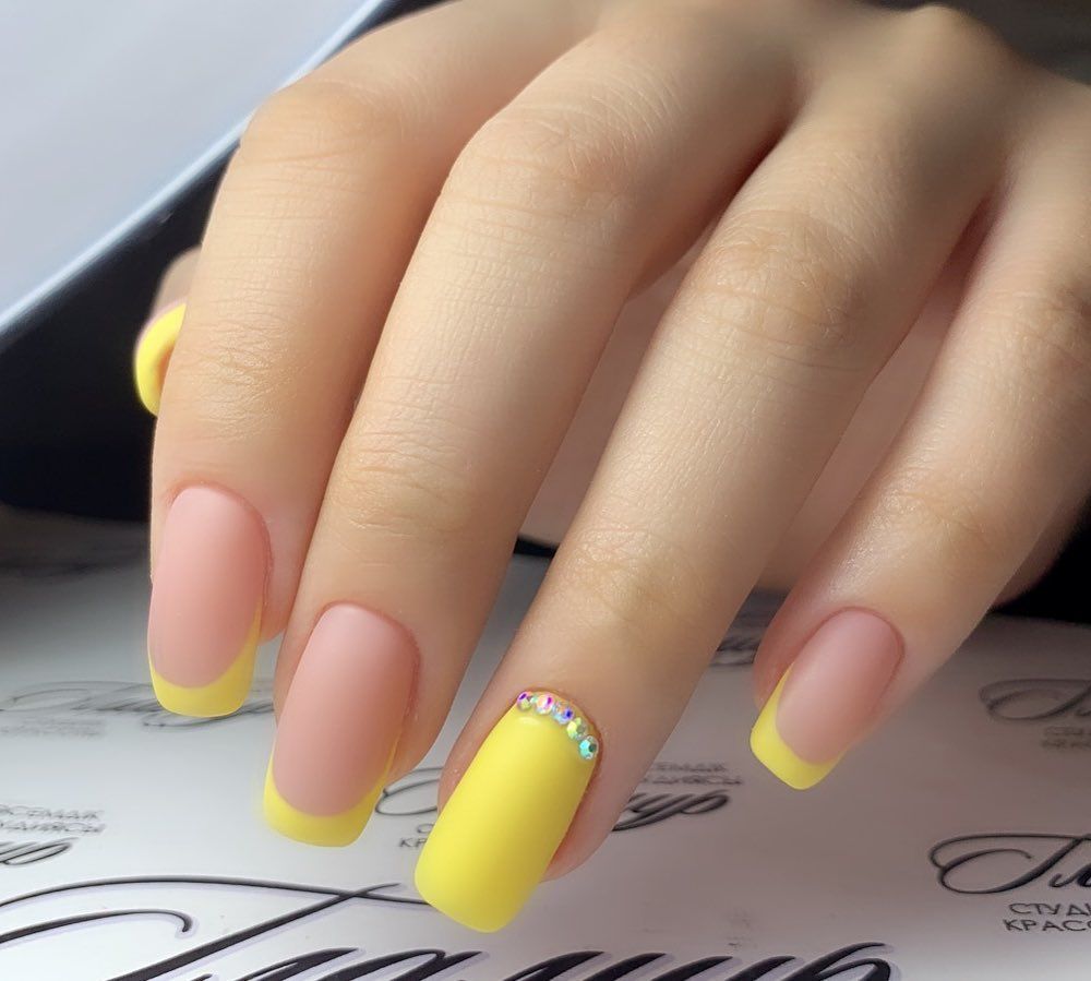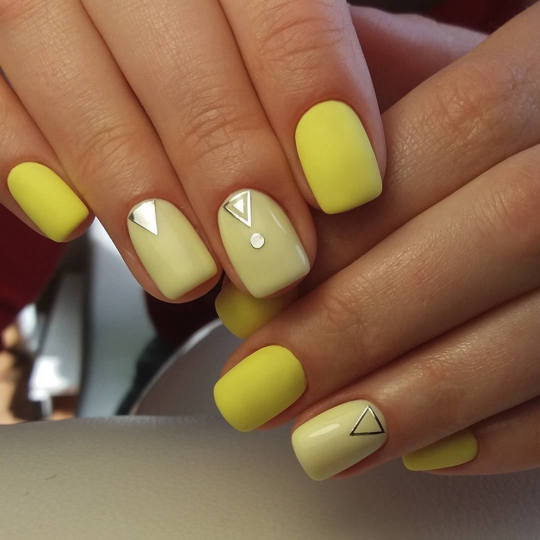 Маникюр желтый матовый