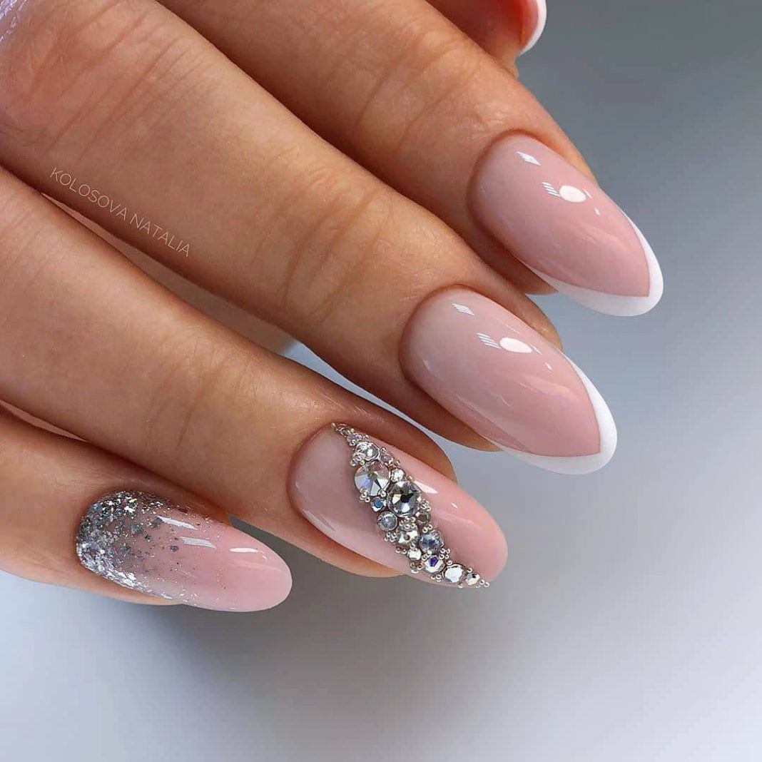 Френч с блестками на ногтях — актуальные оттенки