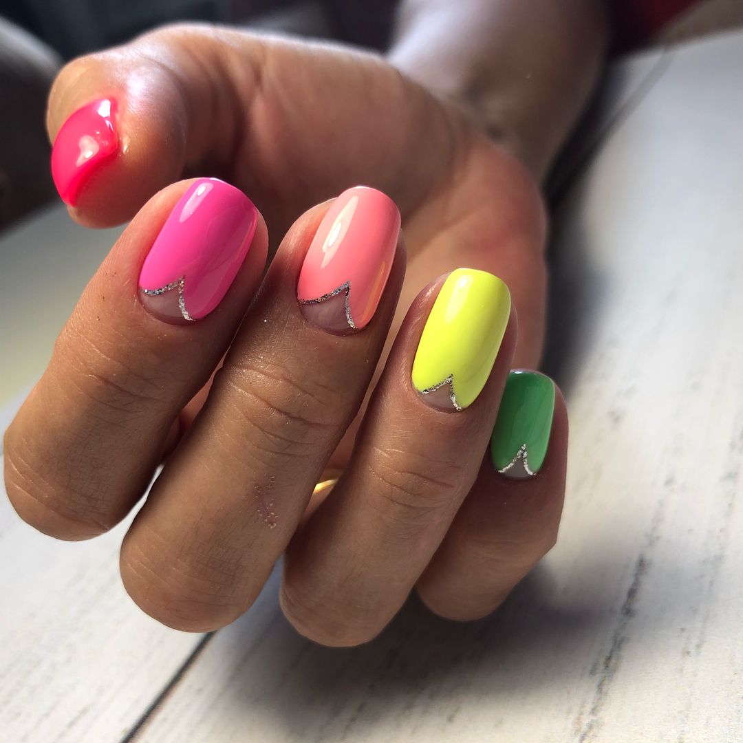 Тренд маникюра гель-лаком 2022 -шиммеры и глиттеры, то есть разнообразные блестки.Самый хитовый вариант — лунный маникюр, в котором лунки закрашены глиттером, или разноцветный маникюр, в котором блестки используются только для одного-двух ногтей.