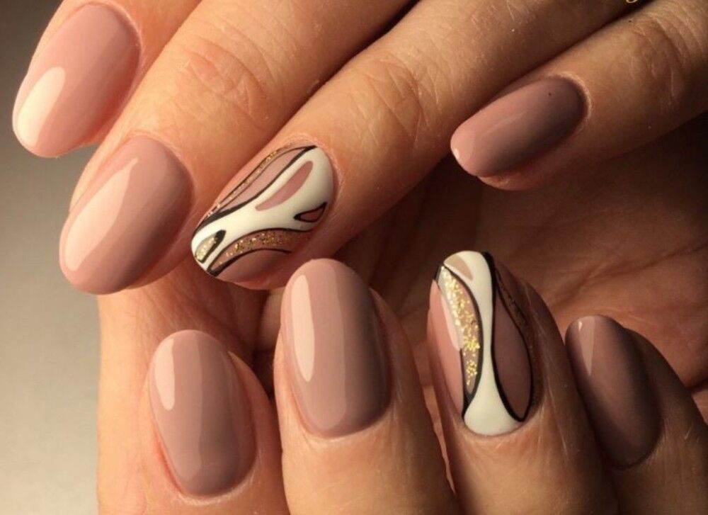 Бежевые лаки придают ногтям ухоженный и здоровый вид. Некоторые оттенки делают лак практически незаметным. Если хочется добавить шарма, выбирайте блестящий декор. Подойдут рисунки через трафарет, выделение улыбки или лунки.