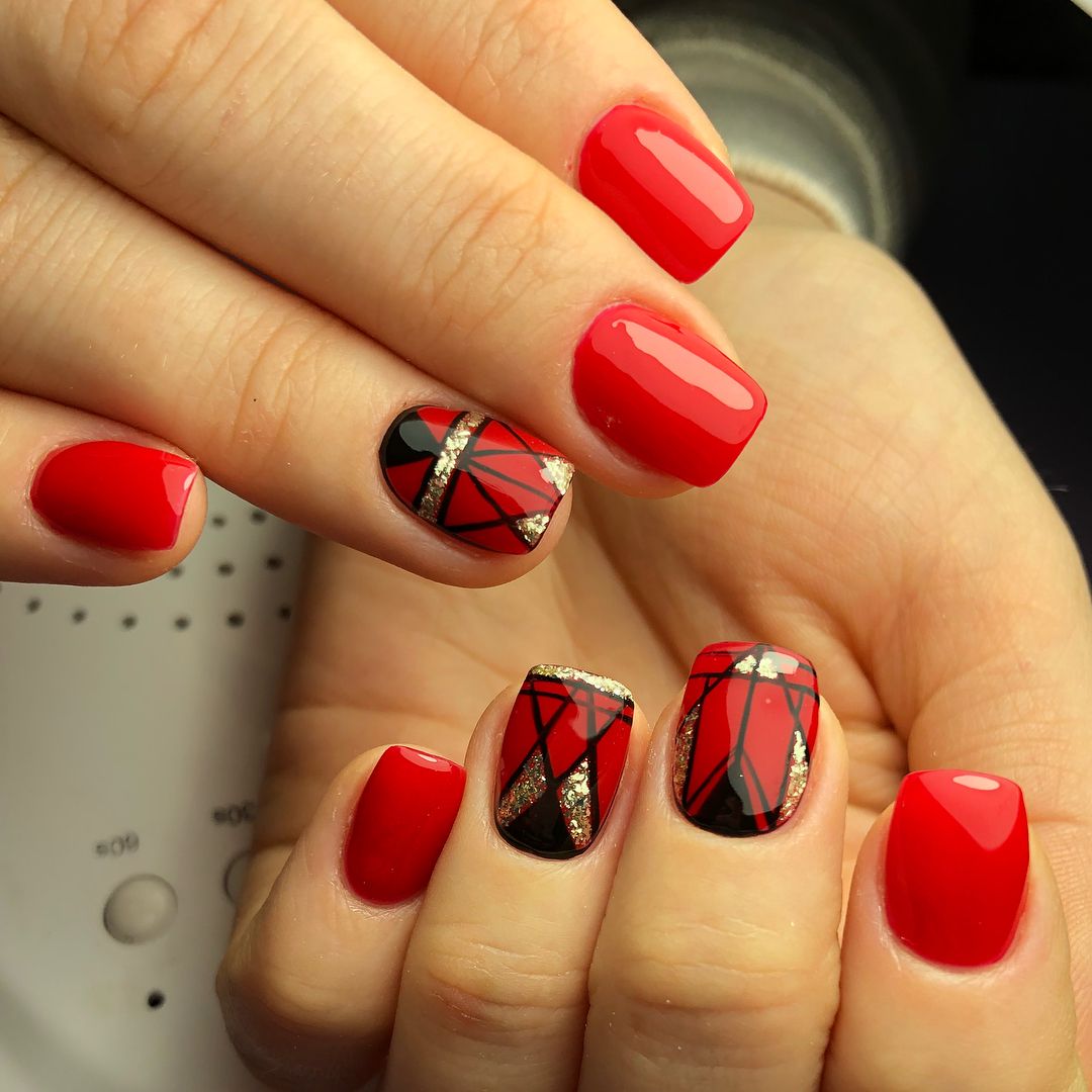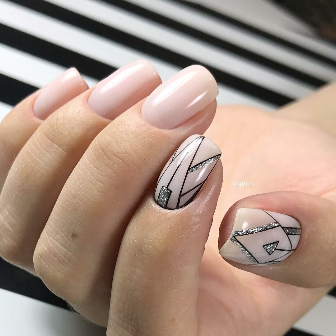 Маникюр с геометрией и блёстками