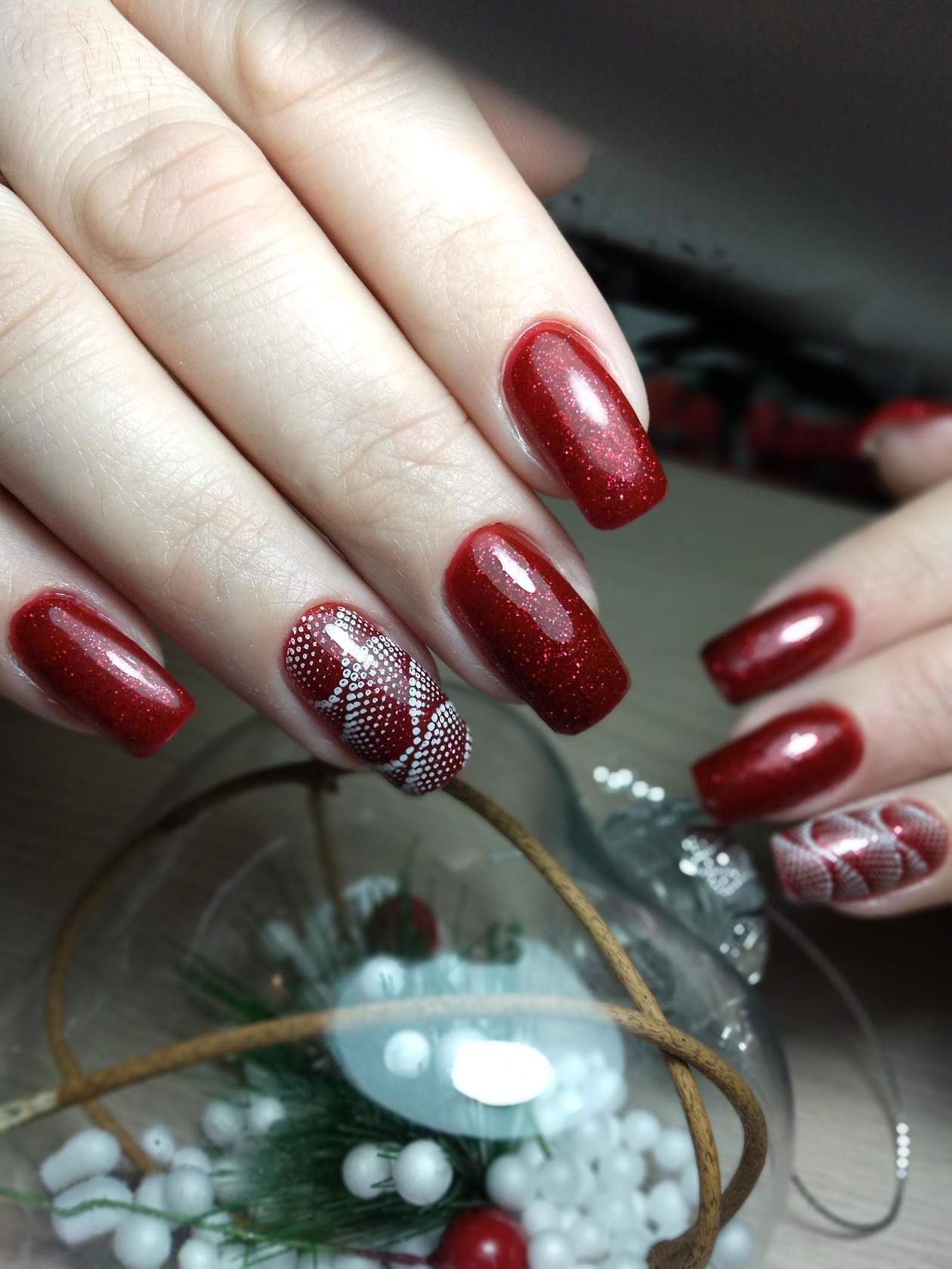 Новогодний стиль со снежинками и сверкающим напылением