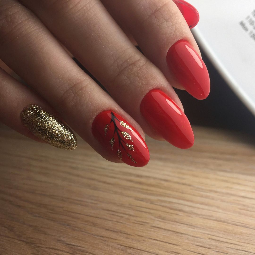 Довольно хорошо блестящий гель-лак и шеллак сочетаются с тематическим сезонным маникюром, особенно с зимним и осенним орнаментом. Довольно изящно и утонченно будут выглядеть осенние листочки с блестящей окантовкой.