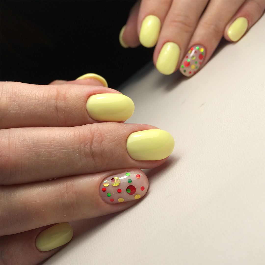 Желтый цвет – цвет активных, позитивных, оптимистичных людей. Желтый цвет заставляет нас жить, творить, разукрашивать серые будни. Он ассоциируется у нас солнцем, радостью, легкостью и яркостью. Этот динамичный и насыщенный желтый цвет еще не один раз вдохновит на создание и воплощение еще многих новых оригинальных идей желтого маникюра и дизайна с блестками, стразами, рисунками! Пусть любой из видов безупречного маникюра, торжественный или повседневный, спокойный или вызывающий непередаваемые эмоции, минималистичный или насыщенный дизайнерскими находками, блестящий или матовый, создаст его обладательницам прекрасное настроение и станет отличным дополнением к выбранному и полюбившемуся образу.