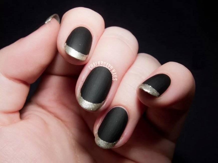 Темный матовый маникюр на короткие ногти, также как просто однотонный, является идеальным выбором для любого случая. Такой дизайн, особенно в темных тонах, выглядит стильно и необычно. Интересно смотрится нейл-арт, в котором бархатная матовость сочетается с глянцем.