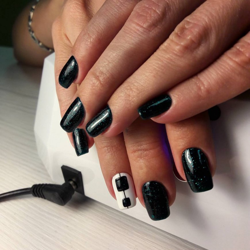 Короткие ногти идеально подходят, для выполнения маникюра чёрным лаком. Красиво выглядит и однотонное нанесение и в сочетании с дизайном.