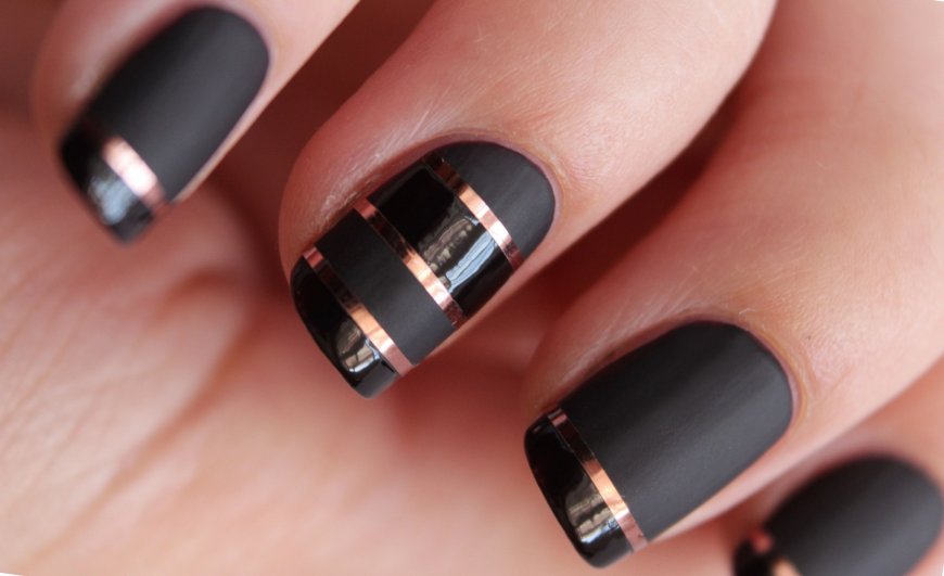 Потрясающий маникюр с сочетанием чёрного и золотого цветов