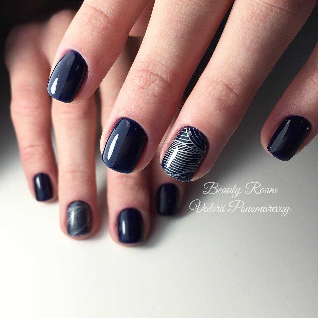 - красиво выглядит комбинация серебристых отпечатков и четких линий гель-краской на ноготках;