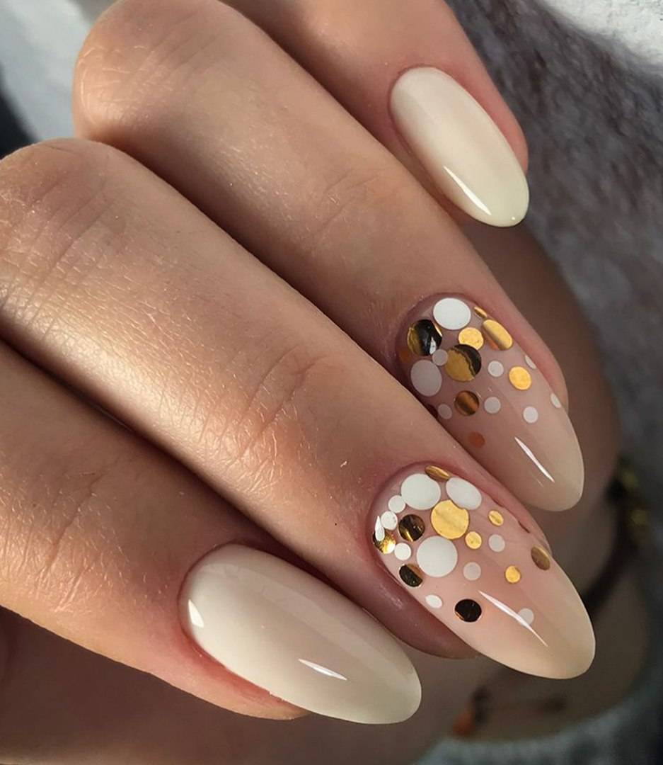 Золотые кружочки в сочетании с французским и лунным дизайном