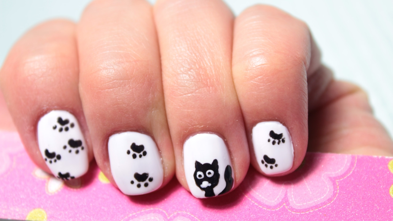 Как на ногтях нарисовать кошку: фото пошагово + видео