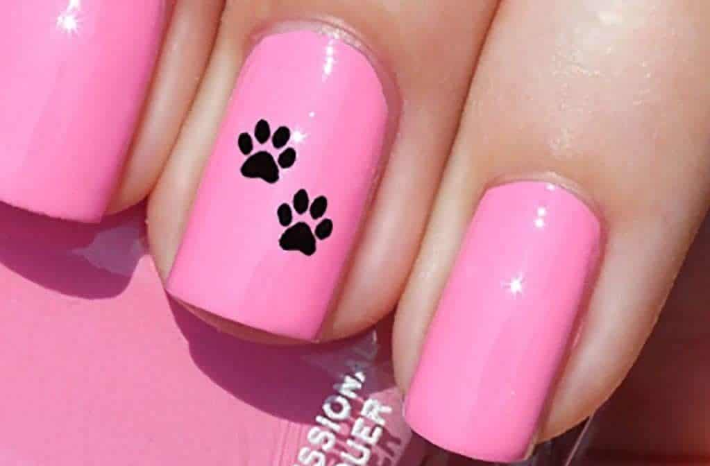 С лапками. Оригинальный вариант маникюра с котиками, суть которого состоит в создании рисунков в виде следов от лапок, которые могут размещаться на ногтях, как в качестве основного декора, так и в “дуэте” с самими кошками. Делается такой дизайн преимущественно на однотонной белой или же других контрастных по отношению к декору тонах подложке.