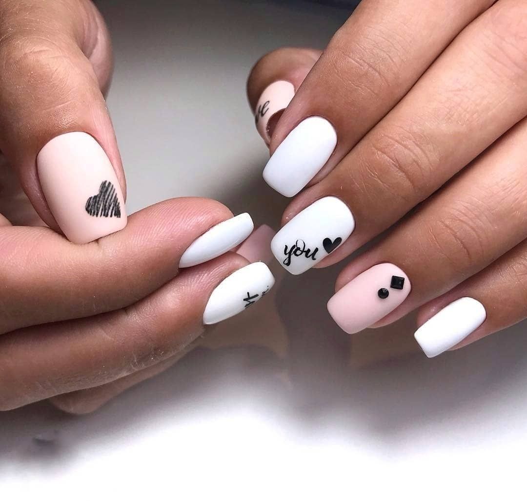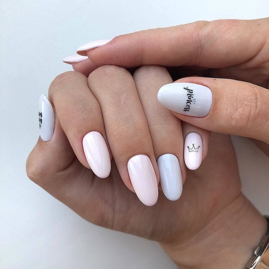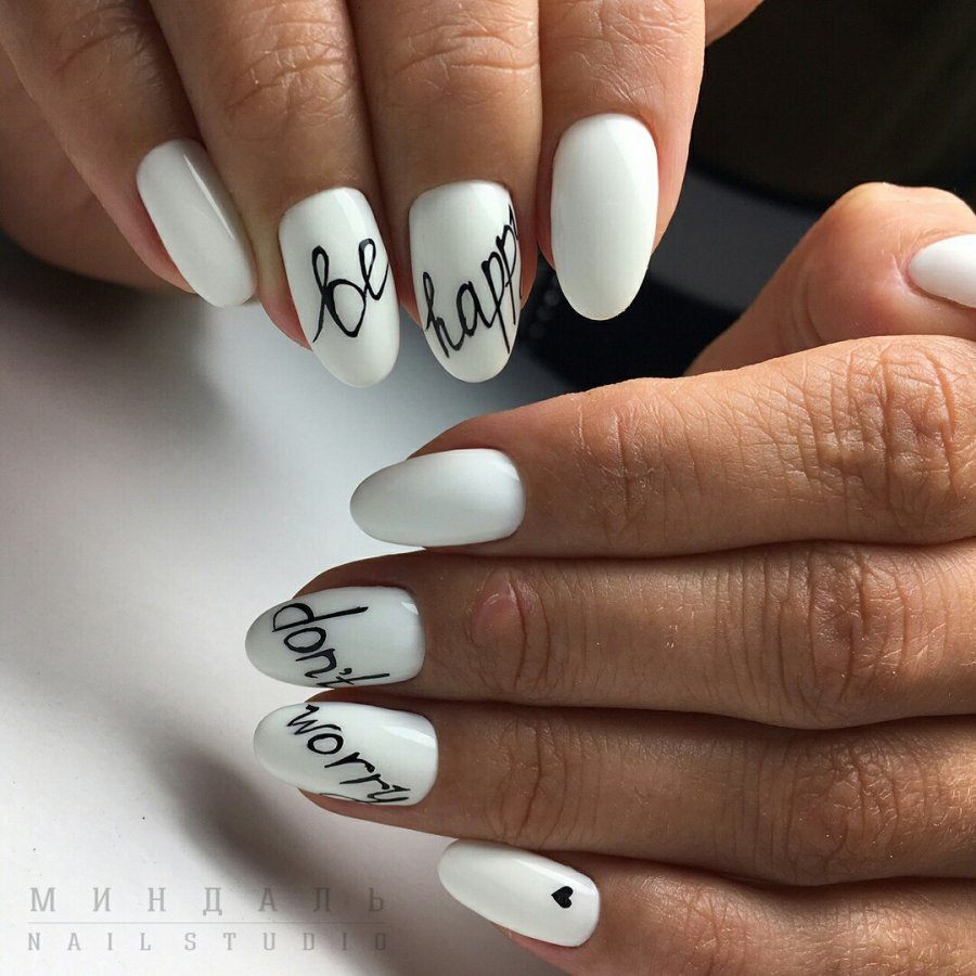 Белый маникюр с надписями