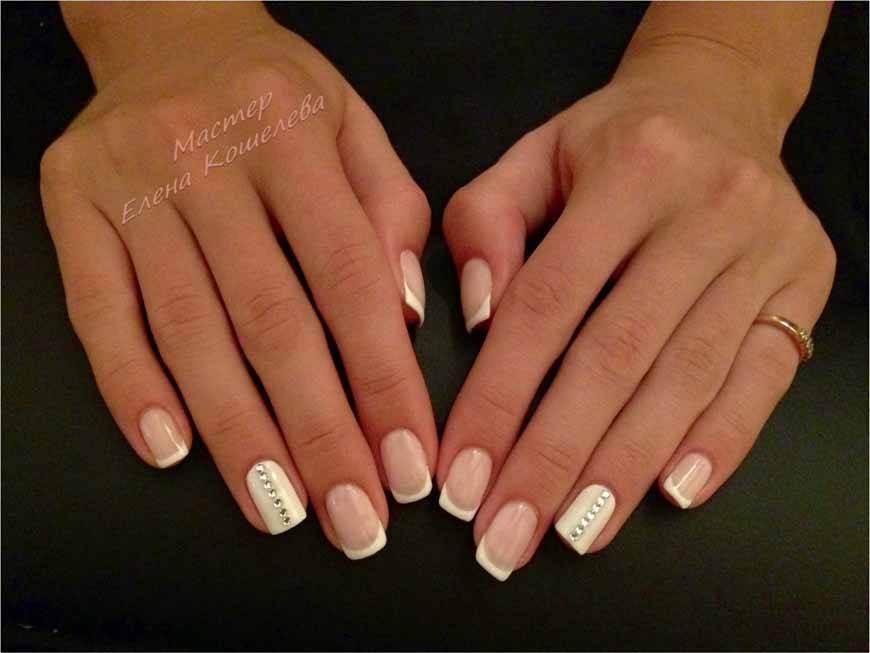 Французский маникюр. Приемлем только в том случае, если пластинки уже приобрели правильную взрослую форму. Линия улыбки должна быть идеально ровной, а ее ширина – не более 3-4 мм.