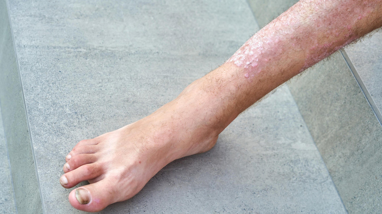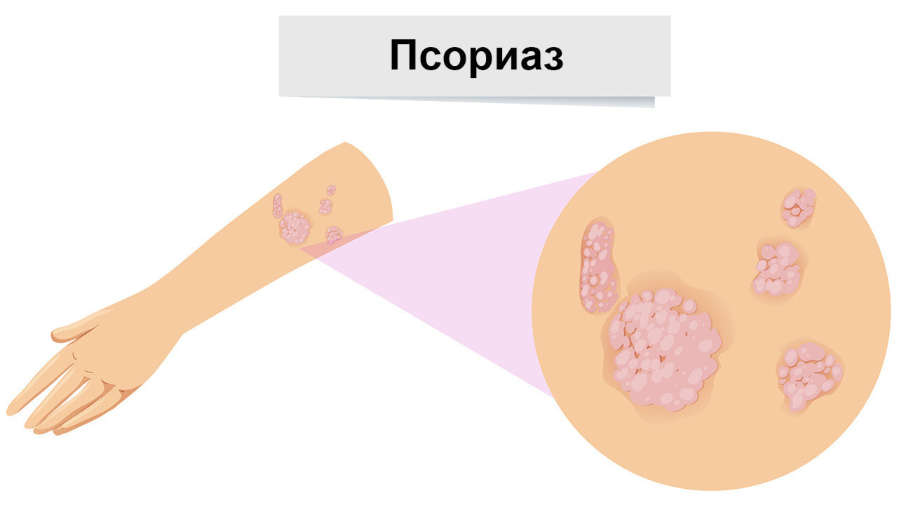 Для кожи, пораженной псориазом, характерно ускоренное обновление эпидермиса. В норме для полного обновления клеток эпидермиса требуется 3-4 недели, а при псориазе на это уходит всего 4-7 суток. Вследствие дегидратации кожа становится сухой и менее эластичной. Кроме того, она становится склонной к воспалению, поэтому бляшки, появляющиеся на разных участках тела, особенно на руках, ногах, туловище и волосистой части головы, имеют красноватый цвет. Обычно бляшки покрыты тонкими белесыми чешуйками.Псориаз – хроническое заболевание с волнообразным течением, возникающее обычно после 15 лет.