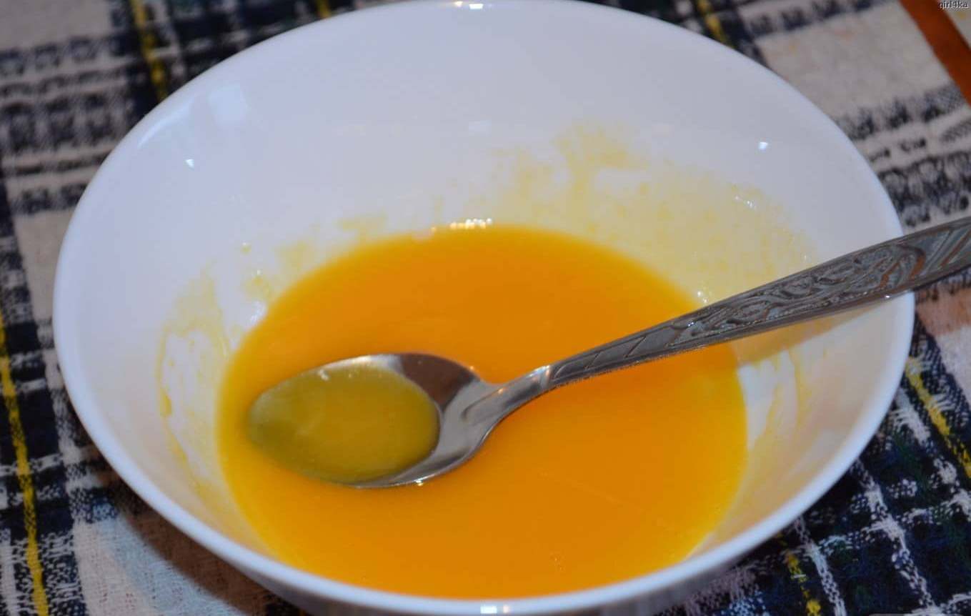Эта маска является более сложным вариантом сразу двух версий – яично-коньячной маски и коньячно-медового средства. Так к получившейся смеси из меда и коньяка стоит добавить один желток (или целое яйцо, если волосы очень длинные) и нанести эту массу на голову.