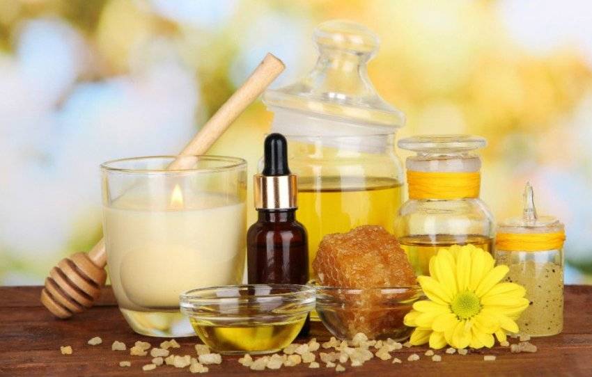 - 1 ст. л. растопленного меда перемешать с аналогичным объемом пчелиного воска, прибавить 1 ч. л. масла оливкового дерева и настойку прополиса (0,5 ст. л.);