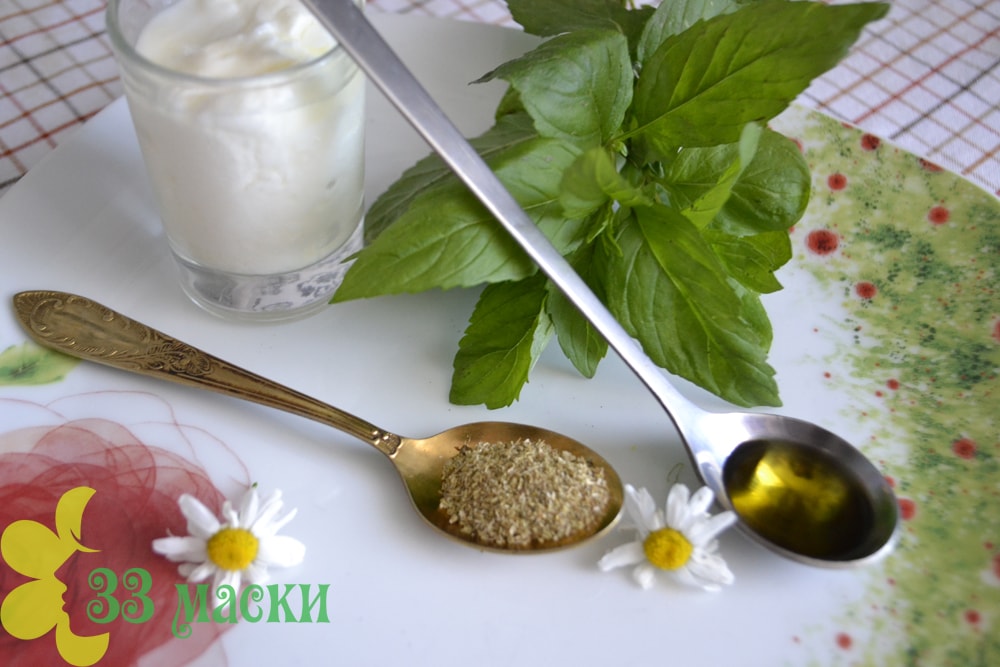 Универсальная маска для лица из мятных листьев готовилась раньше из трех простых компонентов: подсолнечное масло, сметана (сливки для сухой кожи) и сорванные листья растения.