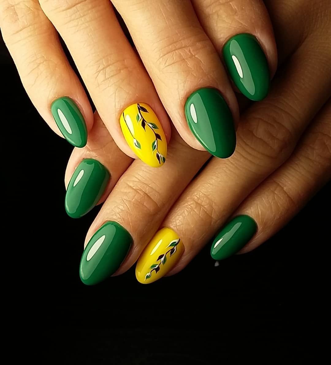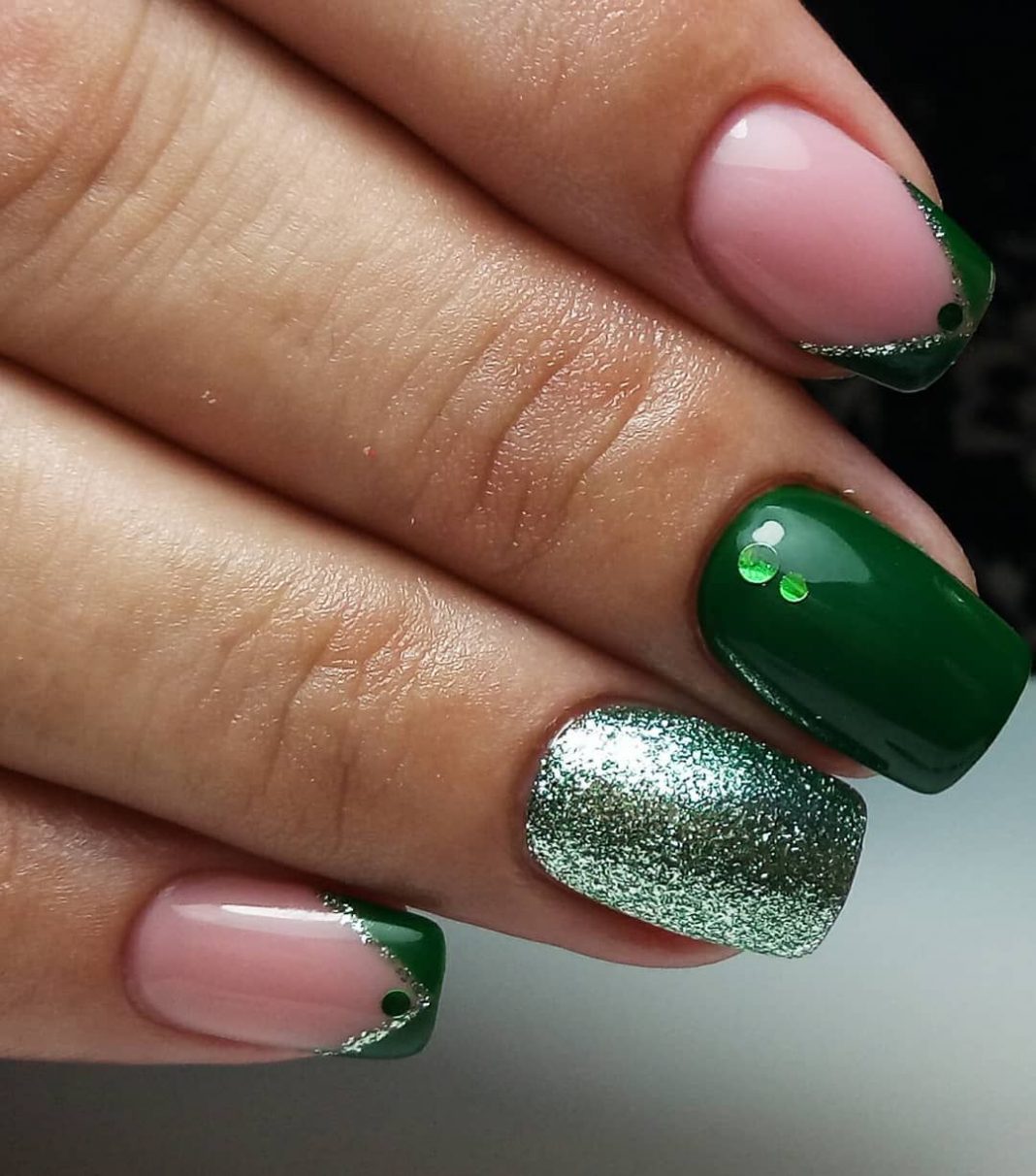 Зеленый дизайн ногтей гель-лаком в сочетании с другими оттенками