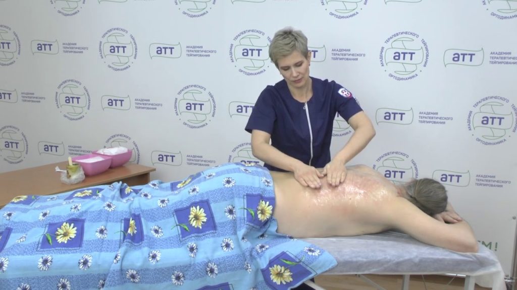 Применяется глубокое надавливание, легкие удары ладонями в разных направлениях: вдоль позвоночника, от середины к бокам, не касаясь подмышечных впадин. Нужно действовать обеими руками для равномерного разминания спины.