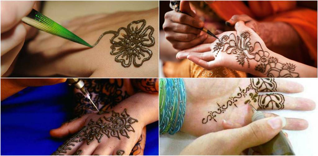 Существуют различные техники нанесения. Но некоторые из них широко применяются при самостоятельном рисовании хной. Они простые и выглядят красиво.