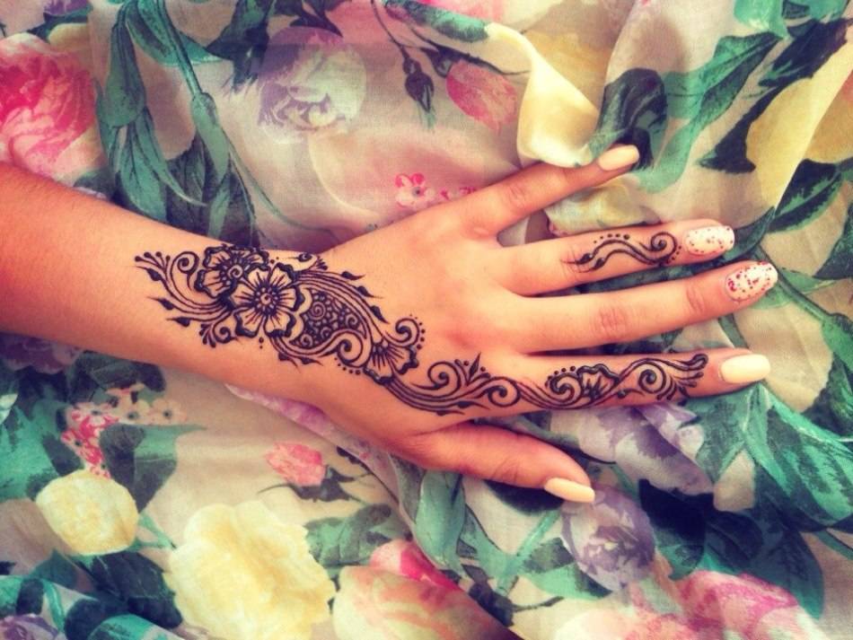 Арабский. Основной мотив этого мехенди– цветы. Эта тема уже нашла отражение в арабских вышивках и живописи, а затем оказала влияние и на нательный рисунок;