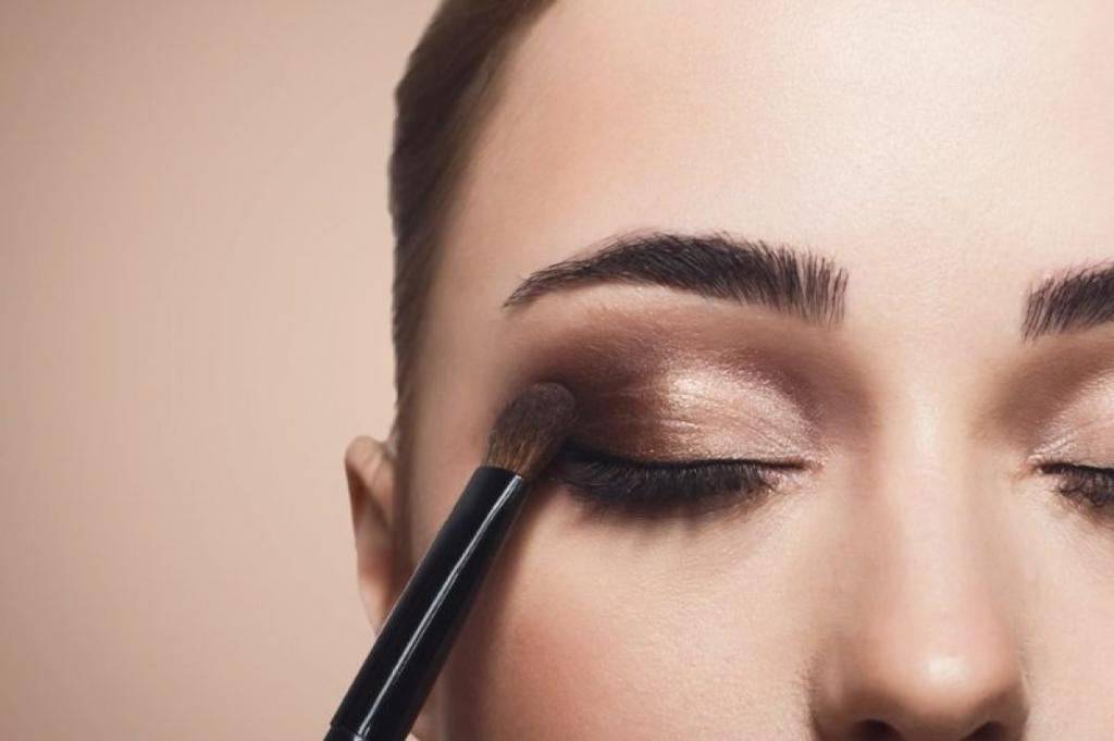 - Границы нанесенных теней нужно тщательно растушевать при помощи специальной кисти для мейкапа век.