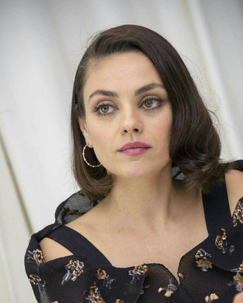 - Макияж, как у Милы Кунис, предусматривает нанесение теней шоколадного оттенка на складку, внешний уголок глаза и немного выше подвижного века.