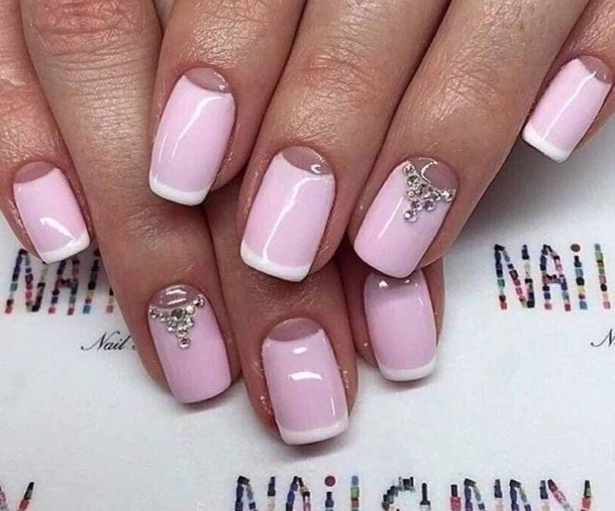 Нежный маникюр одинаково хорошо смотрится на ногтях любой формы. Дизайн может быть любым: нежный френч, яркий нейл-арт, использование стразов, блесток, фольги, элегантный белый или нежный розовый. Все зависит только от вашего настроения и назначения маникюра.