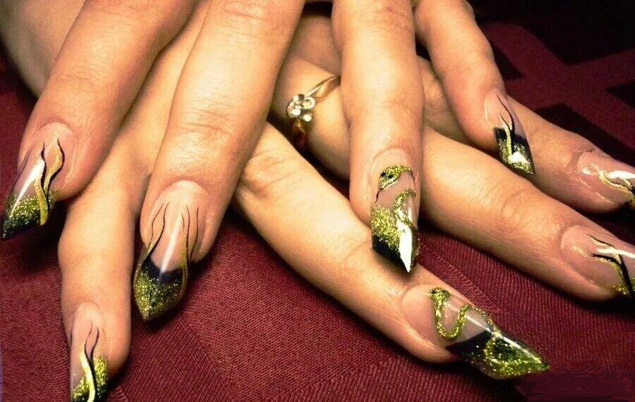 Есть еще ногти-стилеты. Они сильно заострены и удлинены. Выглядит такой маникюр экстравагантно. Но многие выбирают его в качестве повседневного варианта.