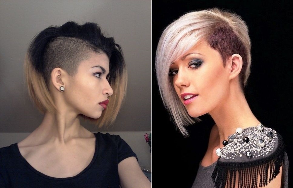 Стрижка, сочетающаяся с укороченным или полностью выбритым виском, придает дерзкий вид и выглядит необычно. В большинстве случаев предполагается асимметричность формы.