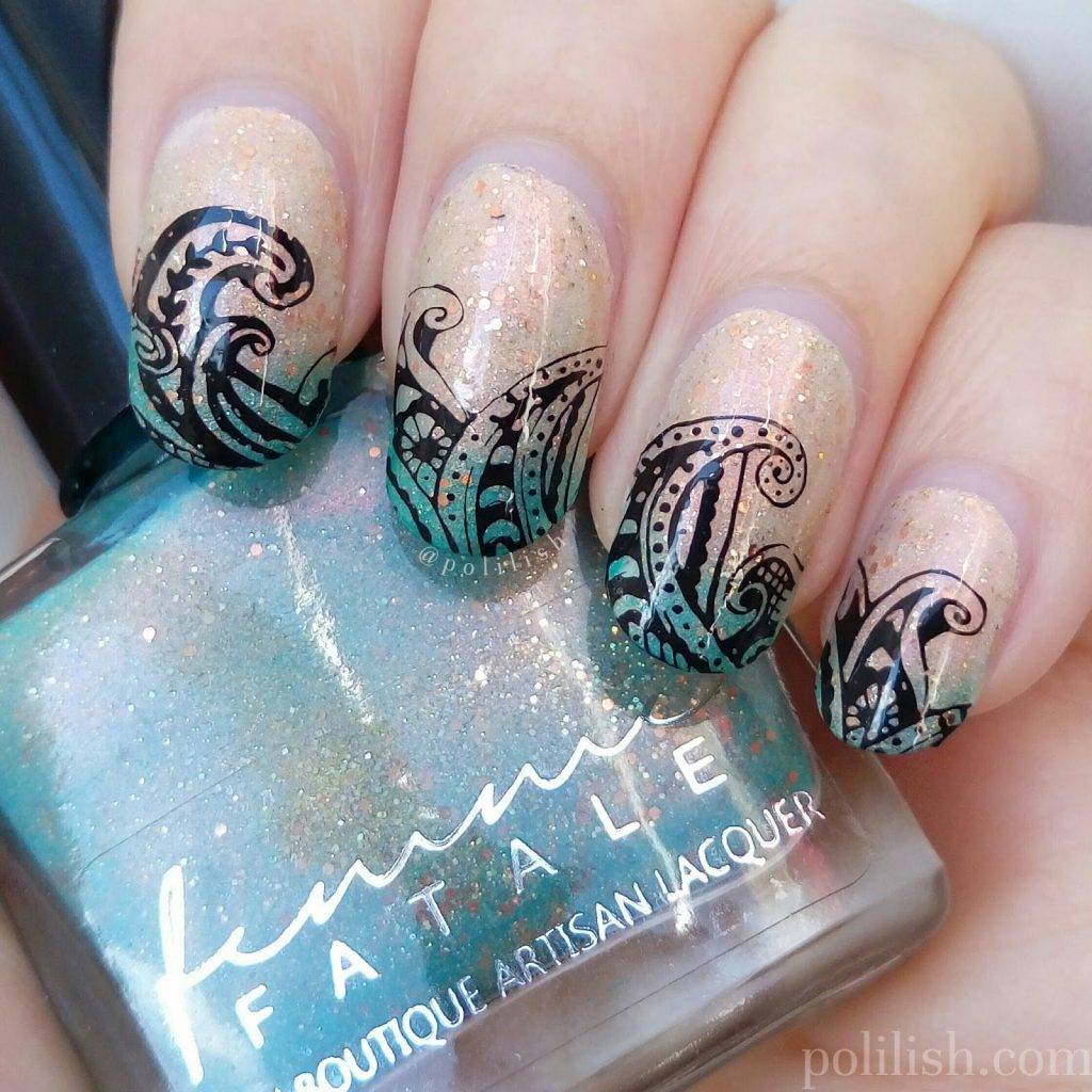 Изображение морской волны сможет не только поднять настроение в жаркий летний день, но и дополнить ваш летний образ. Конечно же, если вы обладаете талантом художника, то без труда сможете самостоятельно нарисовать водную стихию. Если же нет, то можете смело использовать технику стемпинга.