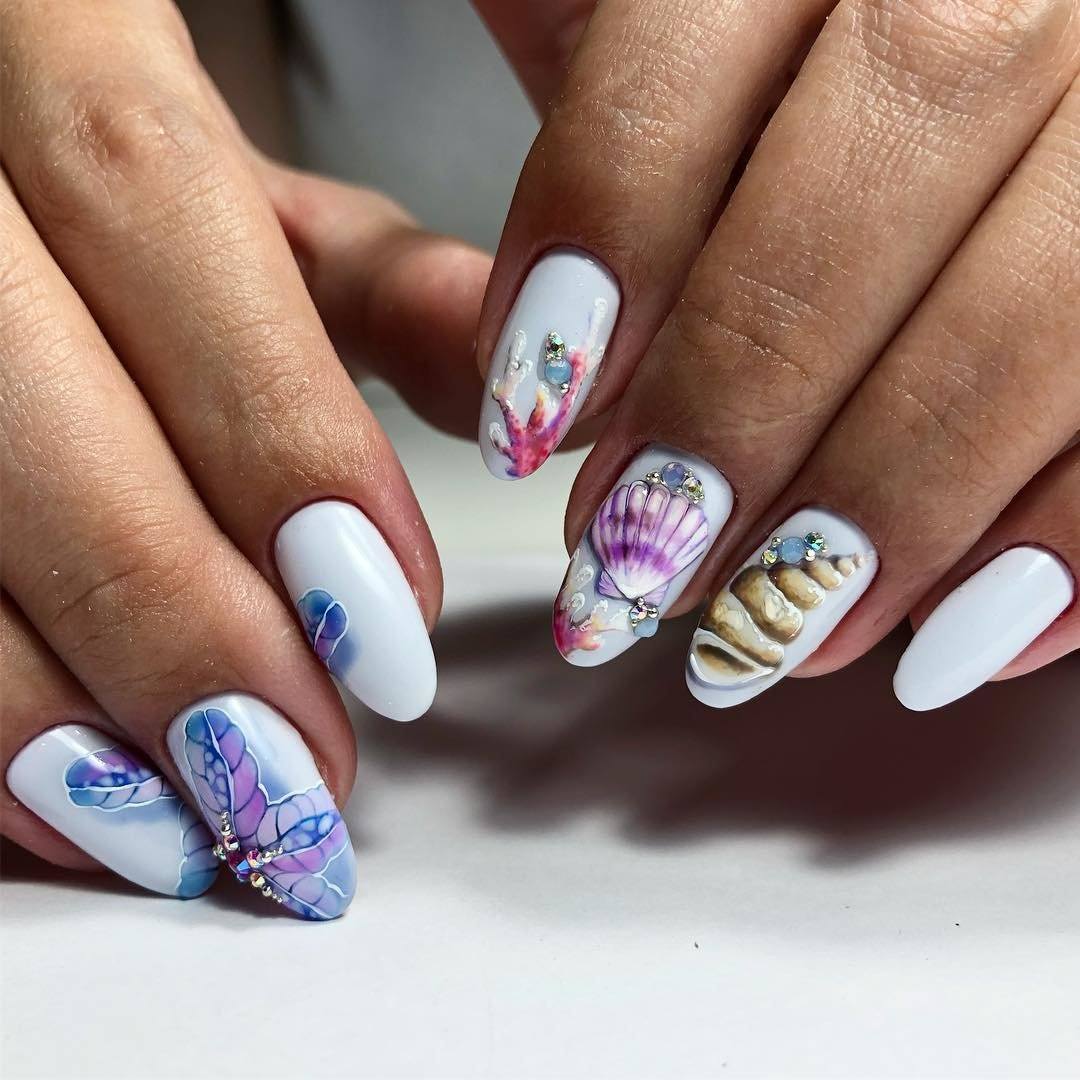 Именно они являются одним из самых морских символов, поэтому ракушки идеально подходят для маникюра в морском стиле. Среди их преимущества называют то, что в таком дизайне нет ограничений. То есть вы можете нанести ракушку только на безымянный пальчик или же украсить ними абсолютно все ноготки. Чтобы бы вы не выбрали, эффект будет потрясающий.