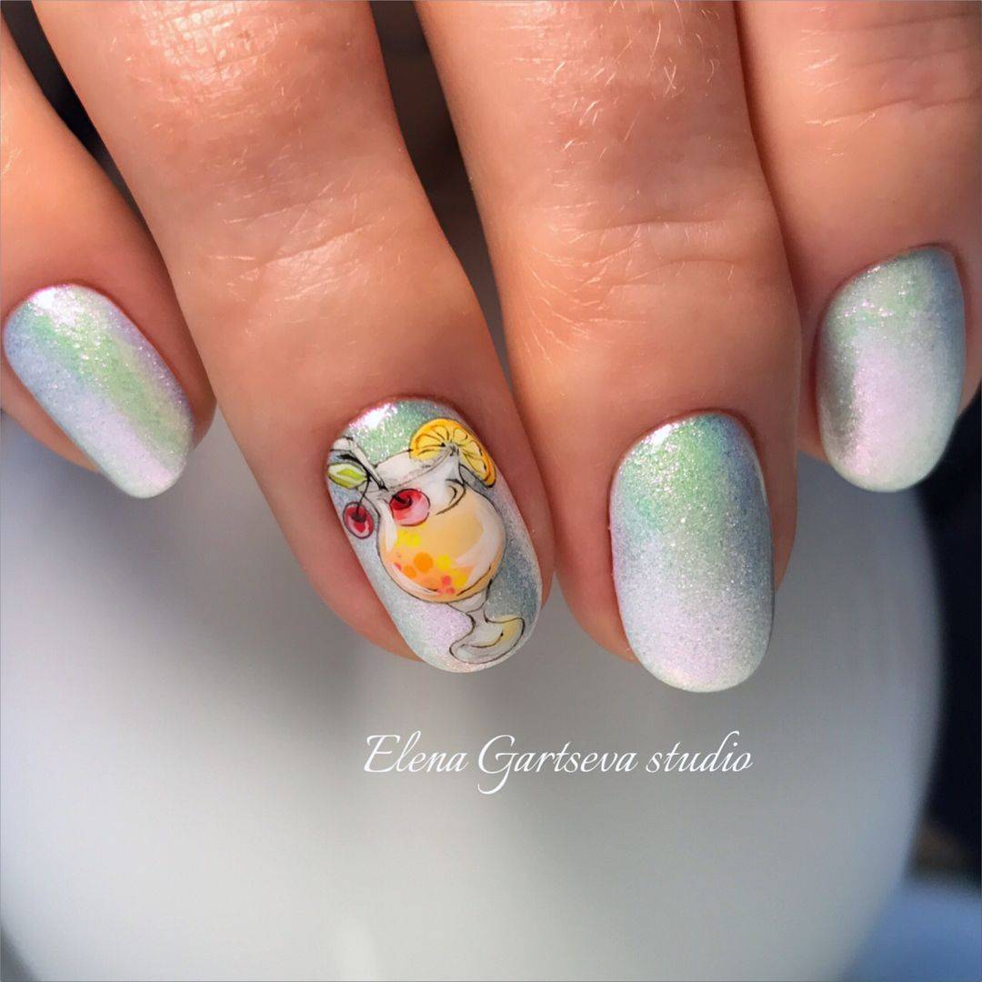 В 2020 году длинные ногти опять на пике популярности. Если вы обладательница длинных и красивых ногтей, вам очень повезло. Ведь при выборе морского маникюра у вас открывается огромный выбор дизайнов и техник выполнения декора ногтей. Популярной новинкой стало выполнение на длинных ногтях техники поп-арта, а именно изображение различных коктейлей или же изображение бокала с коктейлем на весь ноготь. Такой дизайн можно будет декорировать стразами, камнями и жемчугом.