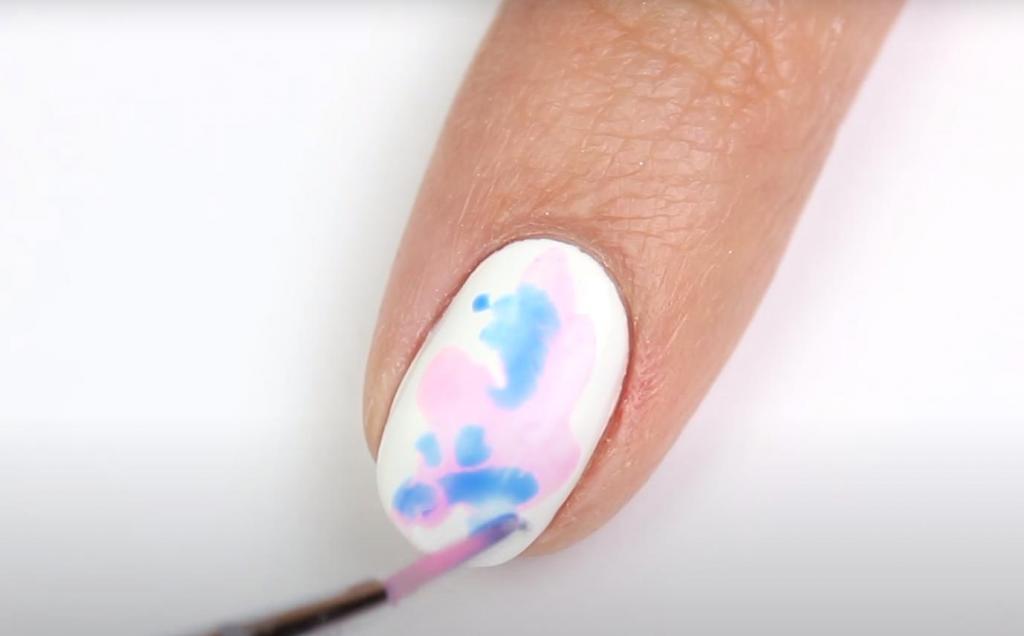 По словам Карен Гутьеррес, в создании популярного летнего тренда нет ничего сложного. Единственные инструменты, которые понадобятся для работы, – это базовый цвет, пастельная палитра акрила, кисточка/губка для макияжа и фиксирующее верхнее покрытие для ногтей.