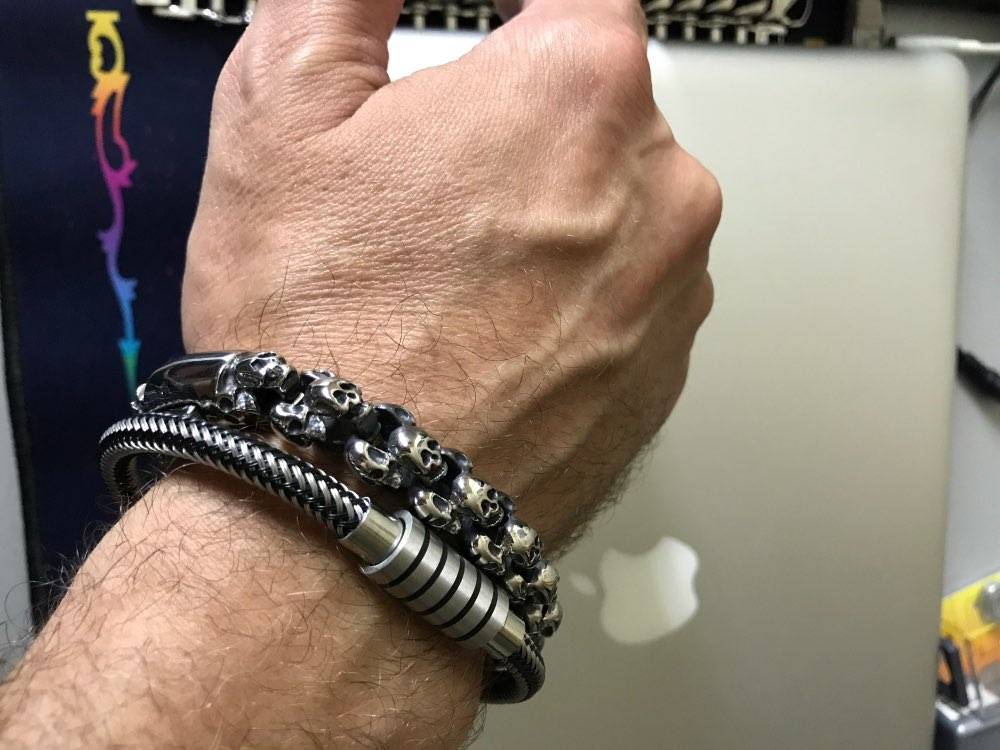 Такое украшение подойдет для мужественных и брутальных натур. Оно свидетельствует о твердом характере владельца. Учитывая, что сталь не благородный металл, носить браслет можно практически везде, но уместнее всего они будут на неформальных встречах.