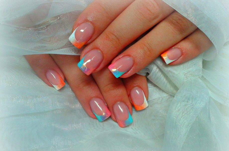 Дизайн для теплого времени года отличается разнообразием. Цветная палитра красок отлично сочетается с макияжем, тоном загорелой кожи и легкой воздушной одеждой. Дизайнеры предлагают несколько способов сделать классический французский маникюр уникальным и привлекательным. Для этого необходимо воспользоваться популярными расцветками гелей и лаков, входящих в вашу коллекцию.
