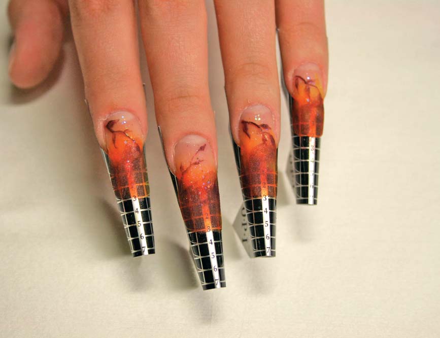 Итак, акрил и гель имеют такое несомненное достоинство, как твердость и крепость. Причем акрил гораздо крепче геля, но зато гель обладает лучшим «сцеплением» с ногтем. Но при применении данных материалов у некоторых клиенток под длительным воздействием наращенных ногтей собственная ногтевая пластина начинает расслаиваться или ломаться. Это объясняется тем, что кислород просто не попадает в ноготь через искусственное покрытие. Именно поэтому следует давать ногтям передышку. Это не очень удобно для клиенток, которые привыкли к длинным ухоженным ногтям. Тем более что после снятия наращенных ногтей собственные не всегда оказываются абсолютно здоровыми. Кроме того, к недостаткам акрила можно отнести и его резкий запах. Да и по составу и гель, и акрил являются достаточно химически активными, что делает невозможным их использование для женщин, склонных к аллергии.
