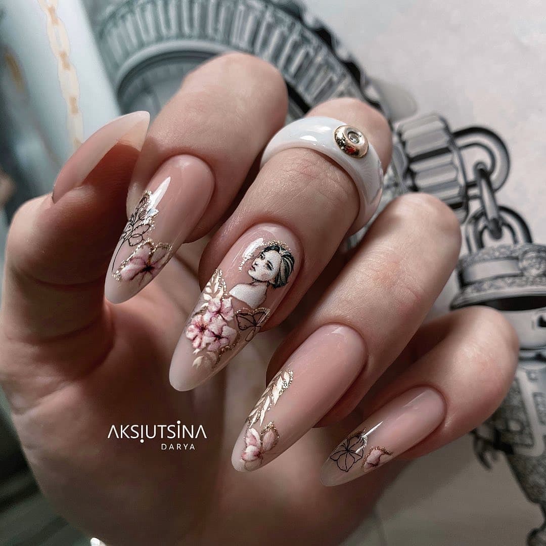 Если уж вы подумали, что нежный маникюр и спокойный дизайн ногтей подразумевает однотонность покрытия и отсутствие украшений, то вы немного заблуждаетесь. Самый восхитительный нейл-арт в нежном решении специалисты маникюрного дела предлагают создавать с помощью камифубуки.