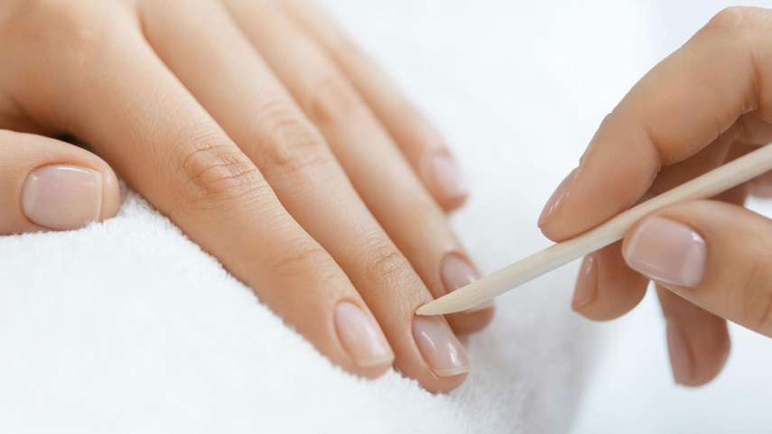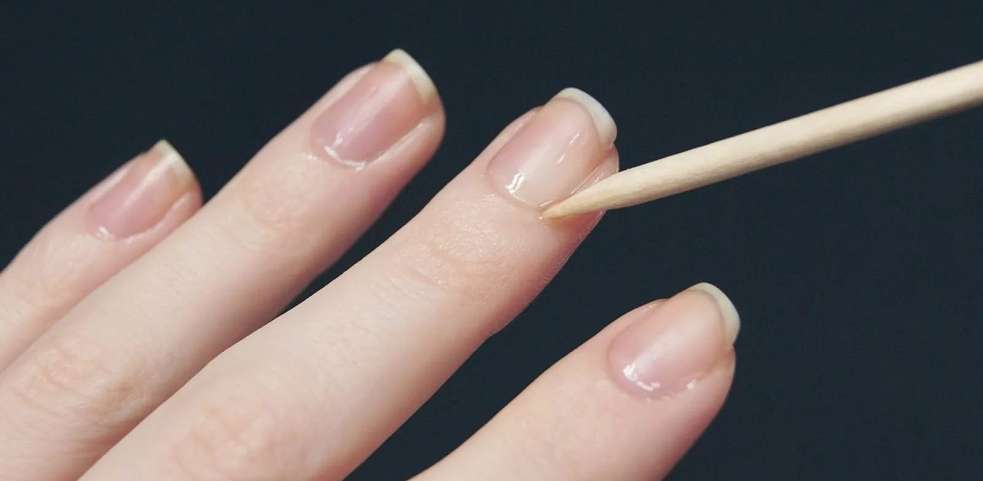 Техника сухого маникюра не предусматривает применение режущих и колющих предметов: кутикула не отрезается, а осторожно отодвигается. Вместо инструментов используют апельсиновые деревянные палочки
