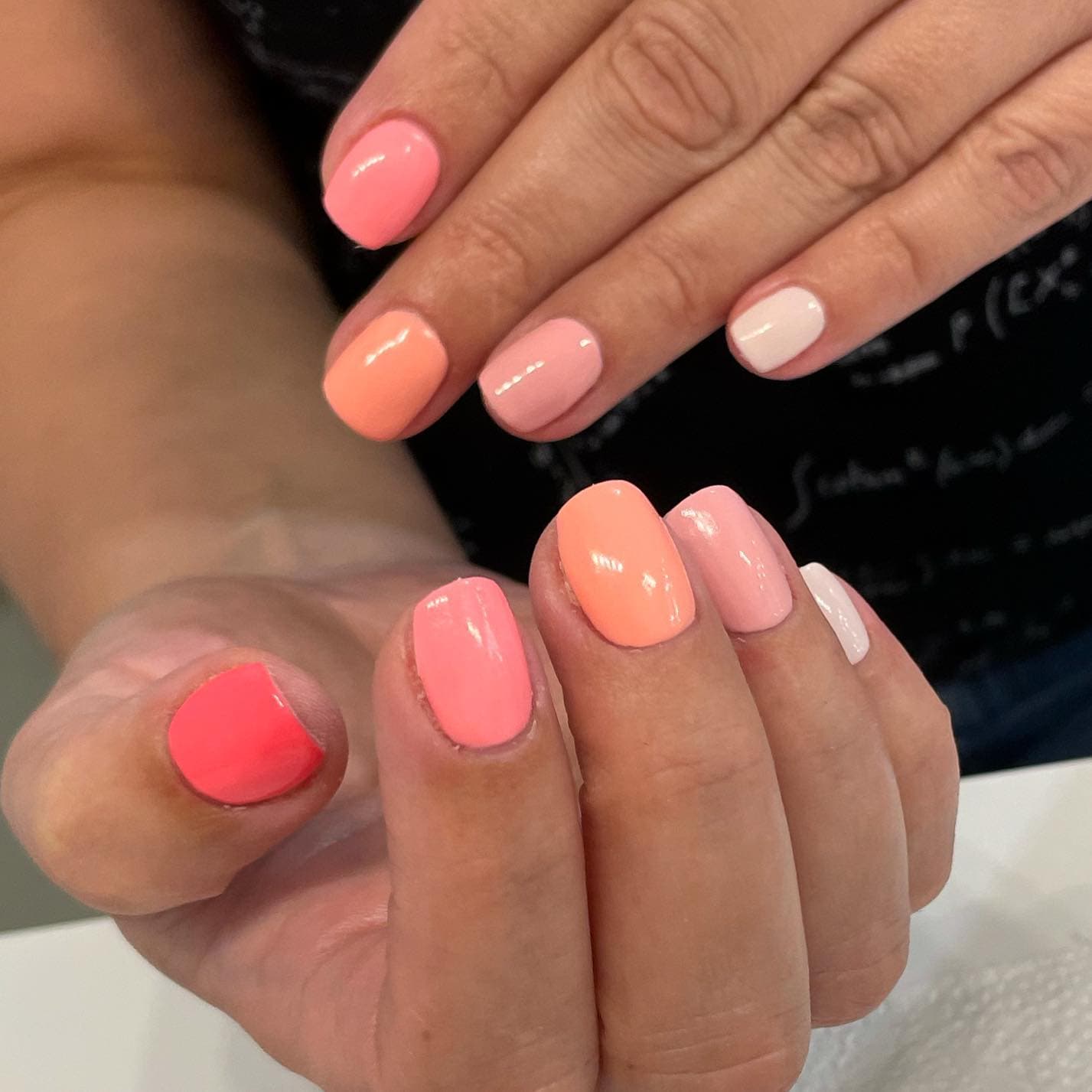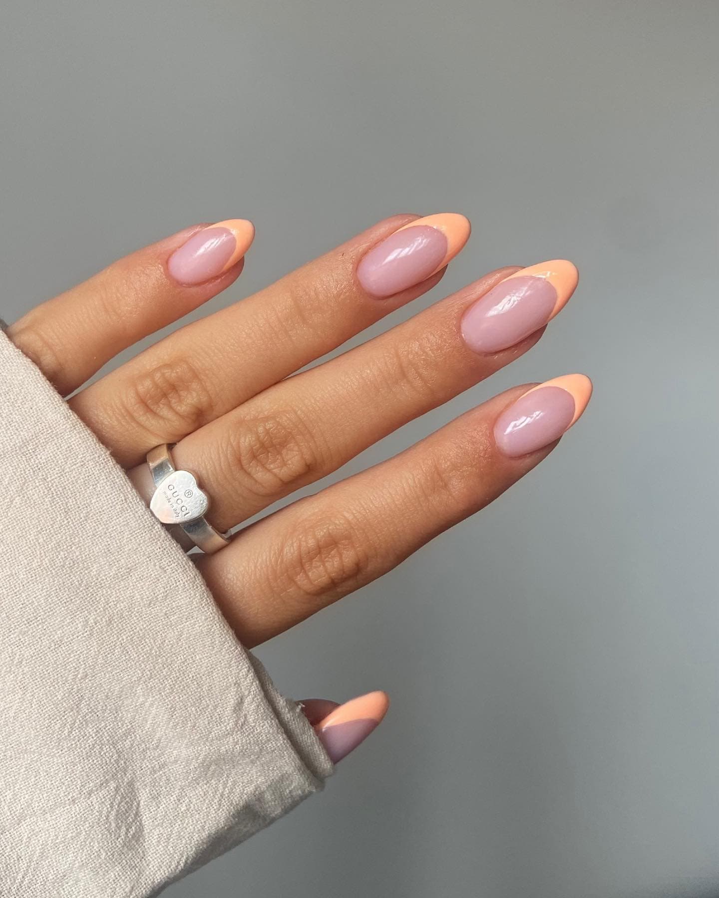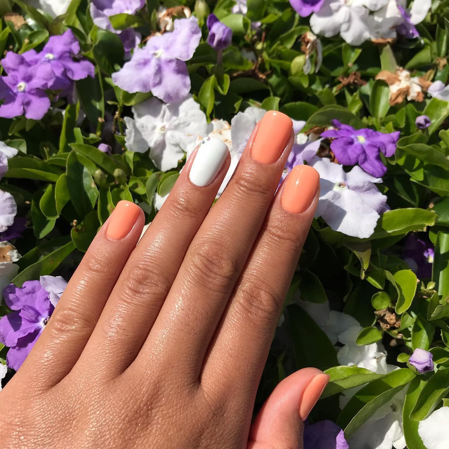 Персиковый — еще один оттенок розовой гаммы, или, вернее будет сказать, его смесь с оранжевым. Чтобы ты могла сразу представить этот цвет, вспомни, как выглядит сочный персик или хотя бы его эмодзи на клавиатуре. Это — тот оттенок, который прекрасно впишется в нежный дизайн ногтей. Несмотря на то, что иногда он может быть ярким, персиковый по-прежнему относится к группе спокойных цветов. А ты можешь смело использовать его в нежном и элегантном летнем дизайне маникюра.