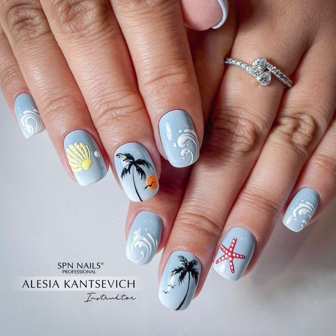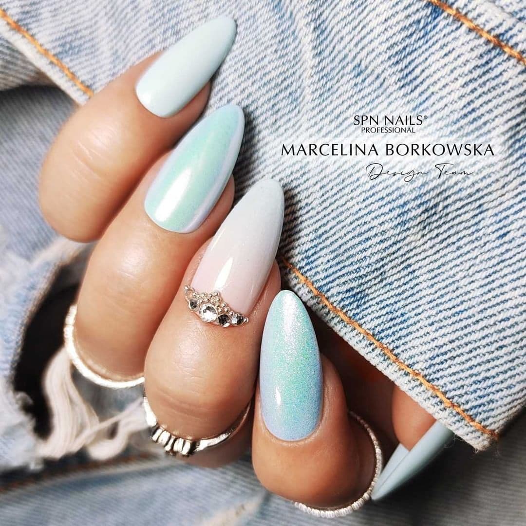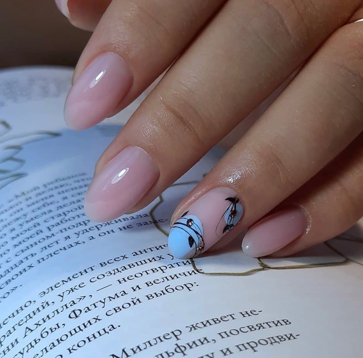Голубой оттенок в последние годы используется в маникюре очень часто. Во-первых, с ним можно сделать трендовый дизайн в виде облаков или волн. Во-вторых, благодаря своей красоте и лаконичности голубой всегда будет смотреться уместно, поэтому он подходит большинству дизайнов. И, конечно, этот оттенок как нельзя лучше будет смотреться с весенним или летним вариантом дизайна нежного маникюра.