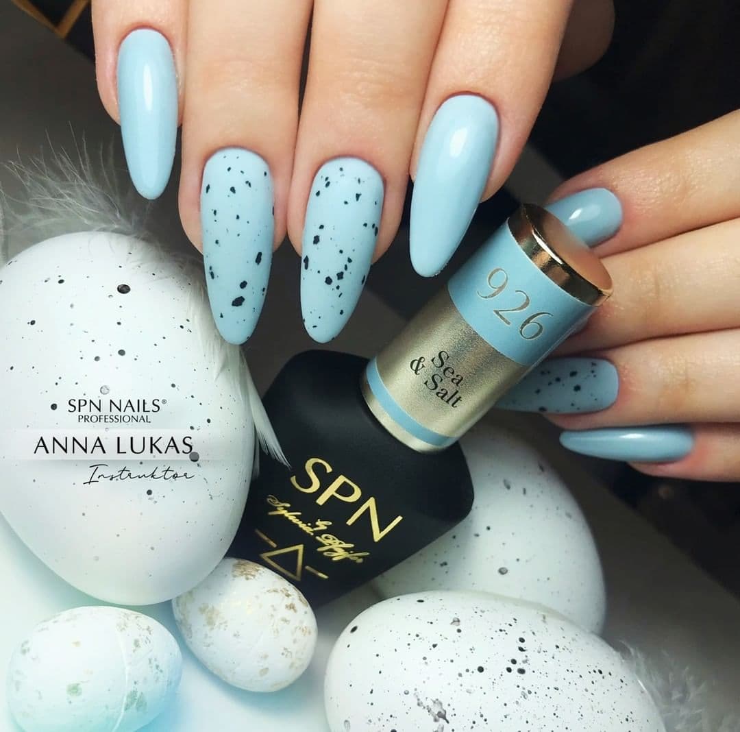 Телесная основа как уже говорилось, идеально подходит под любые рисунки, особенно черного цвета. Интересным трендом в нейл-арте 2021-2022 стал дизайн «перепелиные яйца». Как раз с нюдовым маникюром такой рисунок полностью оправдывает свое название.
