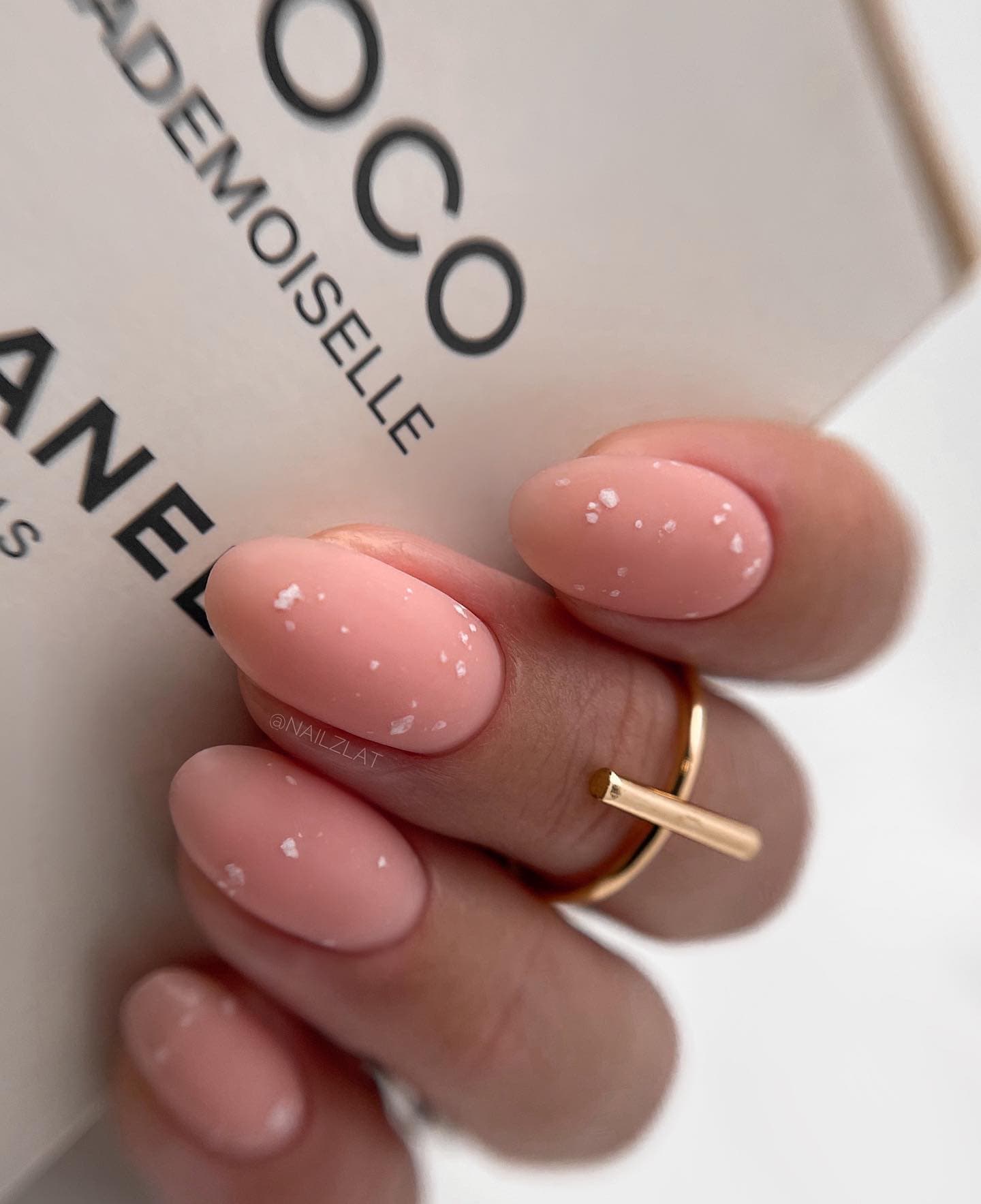 Нюдовый маникюр в дизайне «перепелиные яйца»