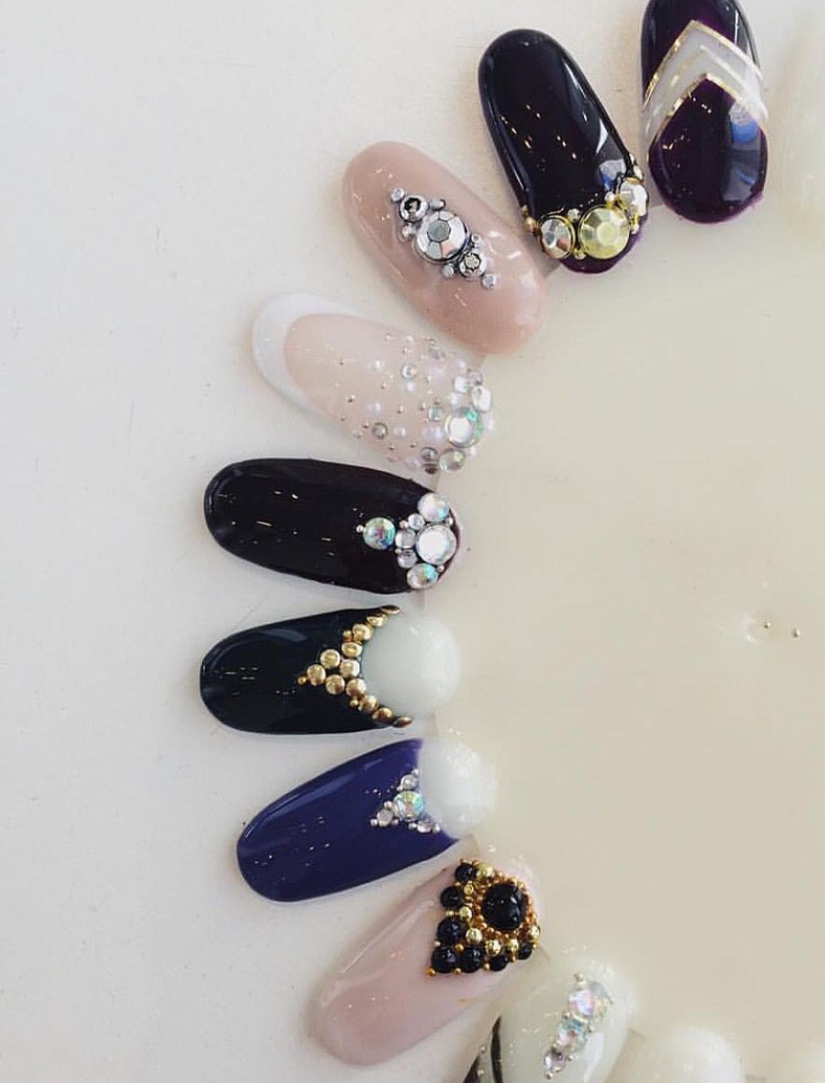 Не теряют своей популярности кристаллы-пикси и стразы традиционной формы. Единственный недостаток такого маникюра – непрактичность. Из-за объемности и неровной поверхности возникает риск зацепиться камнями за одежду и повредить их.