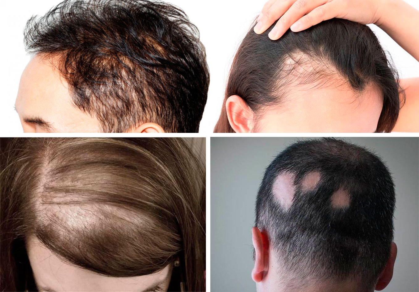 Телогеновая алопеция.Является обратимой и временной формой, за которой следует период восстановления. Характеризуется резким и равномерным выпадением волос по всей части головы, очагов с большей интенсивностью не имеется. Телогеновая алопеция может возникнуть через 3-5 месяцев после инициирующего события: