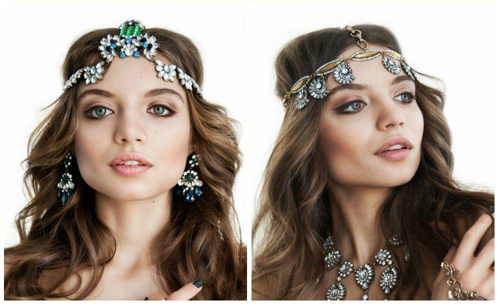 - Большинство моделей носят в сочетании с распущенными локонами. Но многие изделия сочетаются с высокими прическами, заплетенными косами и локонами, собранными в пучок.